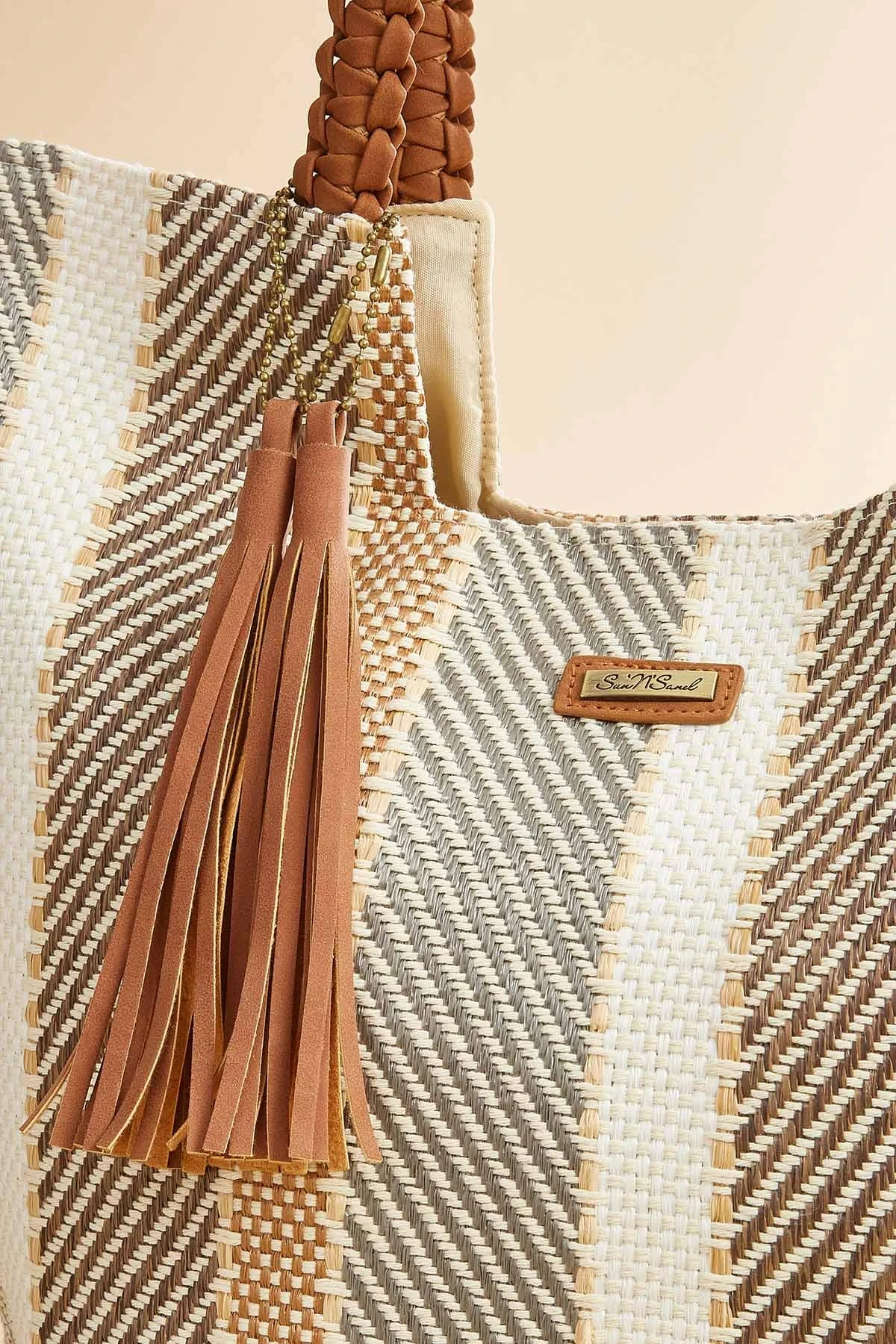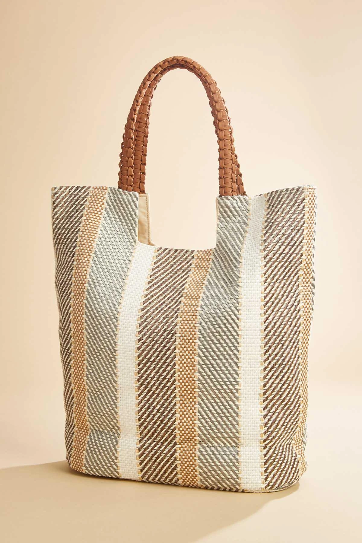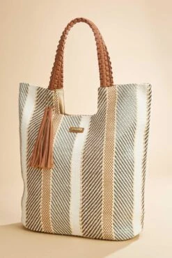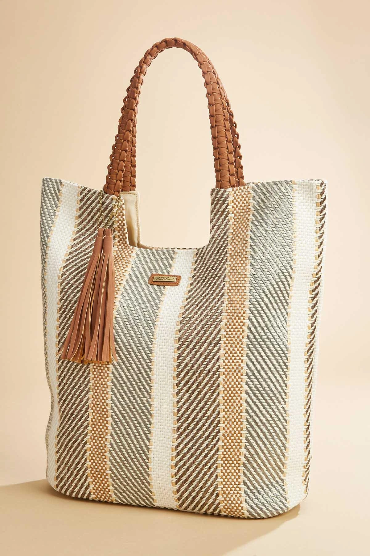 Fit all your beach day essentials in this super cute striped tote complete with a braided handle and tassels!