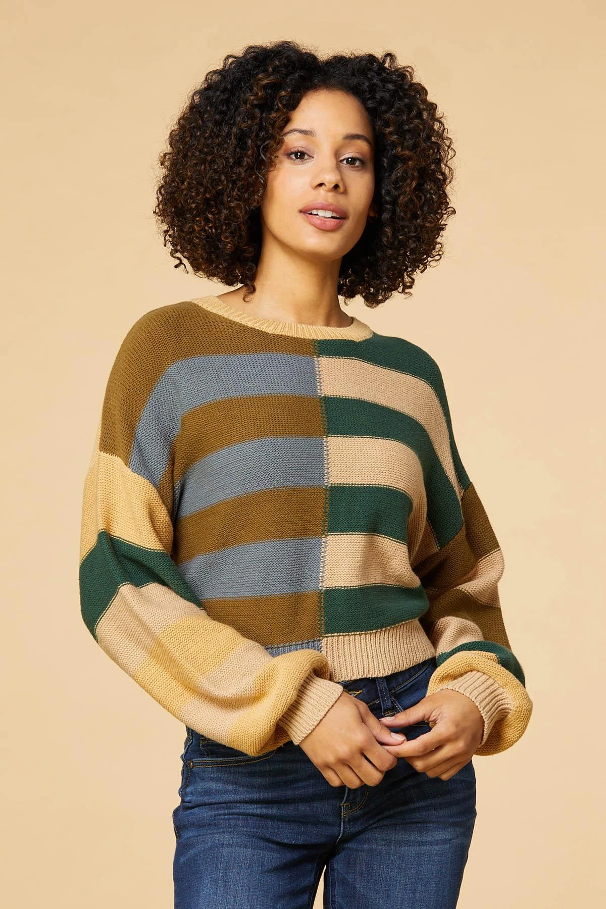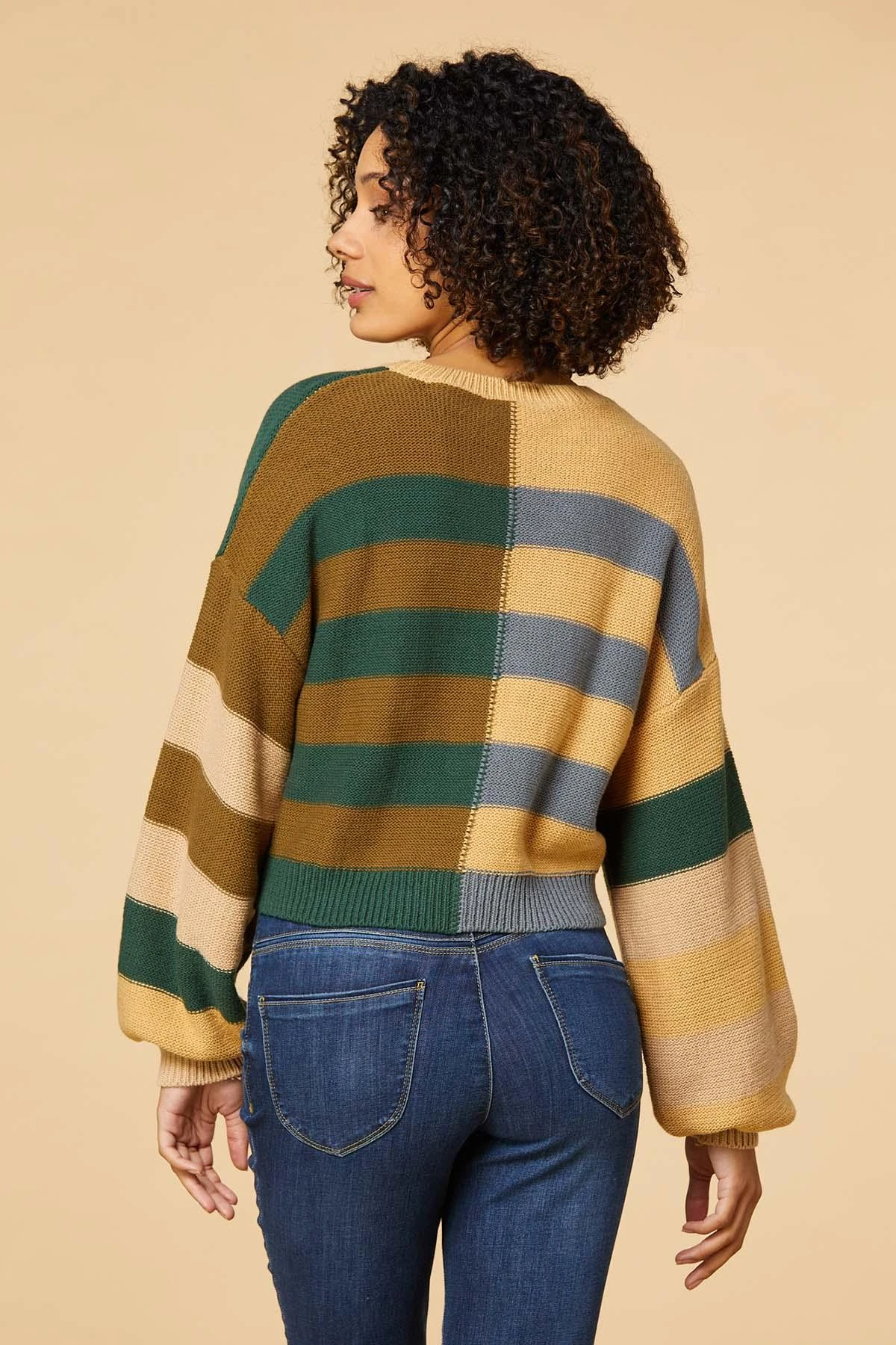 Ready for a dash of color? This sweater features a color block stripe print and a classic sweater fit that’s perfect for chilly summer nights (or days!)
