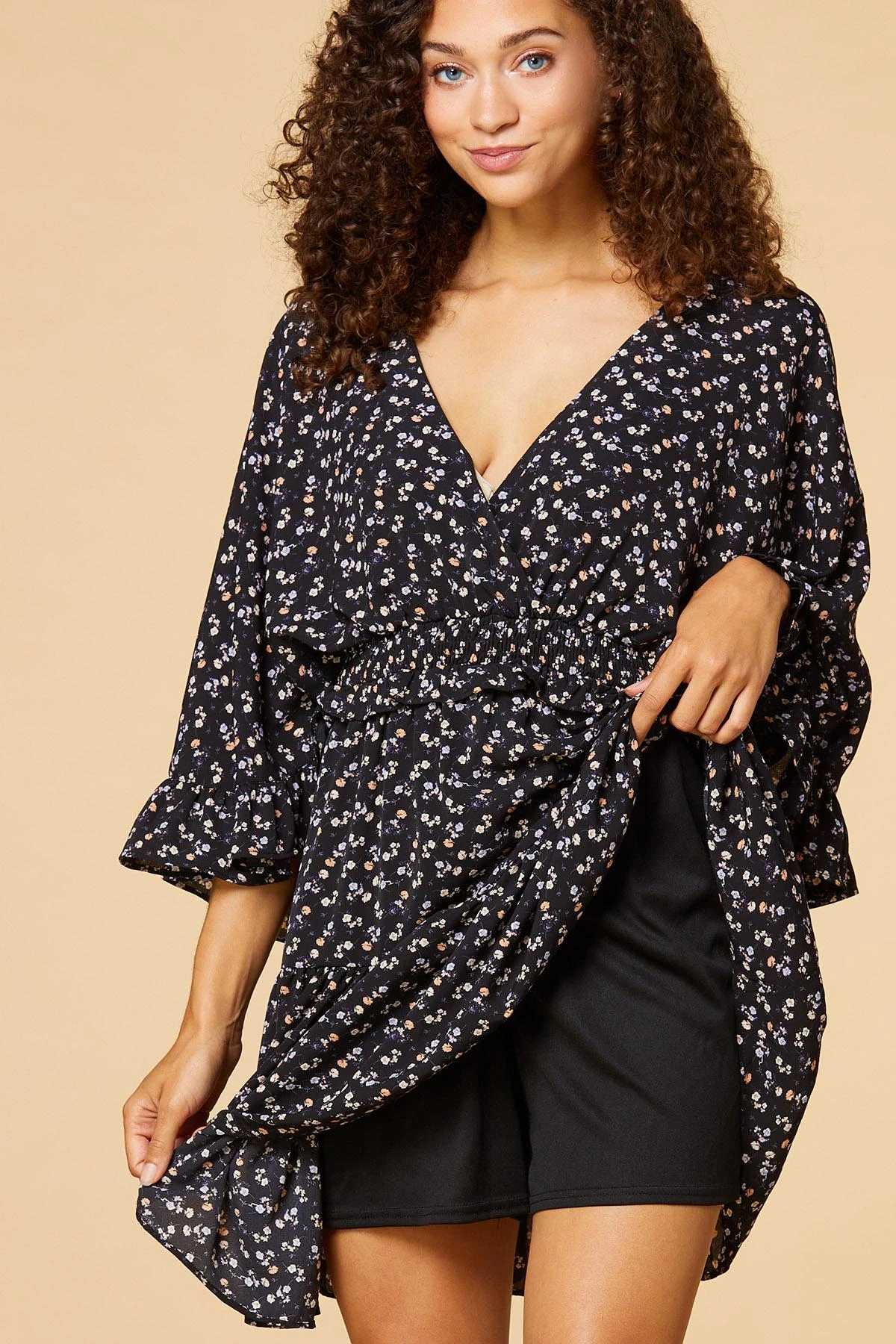 Everyone loves flowers. That’s why we know you’ll love this dress with a tie back, floral print, oversized ruffle sleeves and hidden shorts for your security.