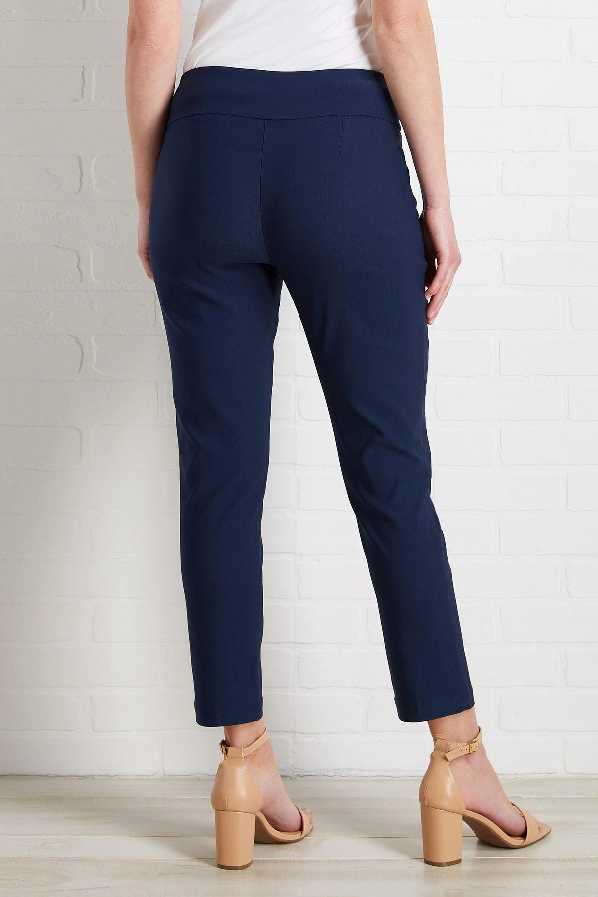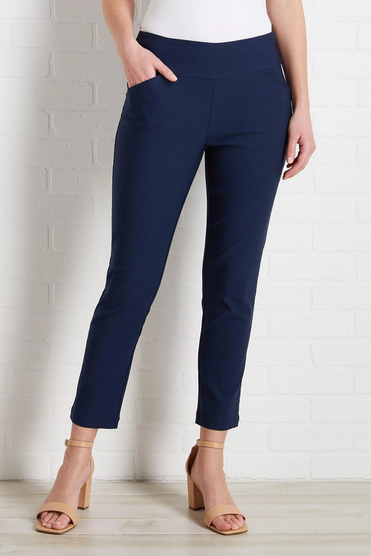 Catch up with coffee and co-workers in this must-have, cropped style with a comfortable, pull-on waist, solid-blue hue and flattering, stretch fit.
