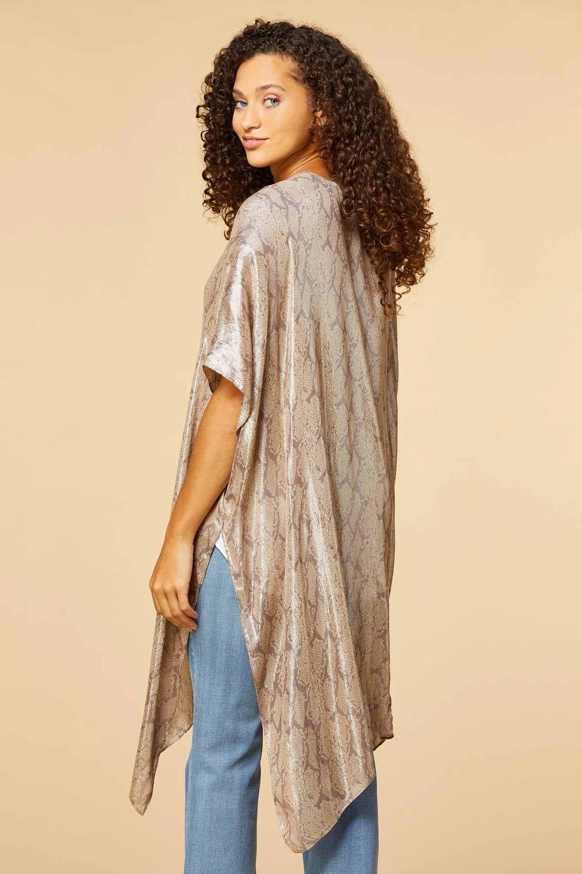 You’ll shine in this kimono. Light fabrication with a metallic sheen and a snakeskin print are a perfect option for any night out.