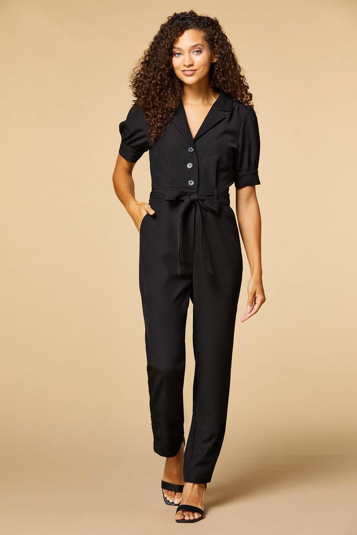 Success isn’t optional in this jumpsuit. Twill fabrication, a partial button-down front with a tie belt and puffy sleeves…need more convincing? It’s got pockets, too. Go ahead and swoon.