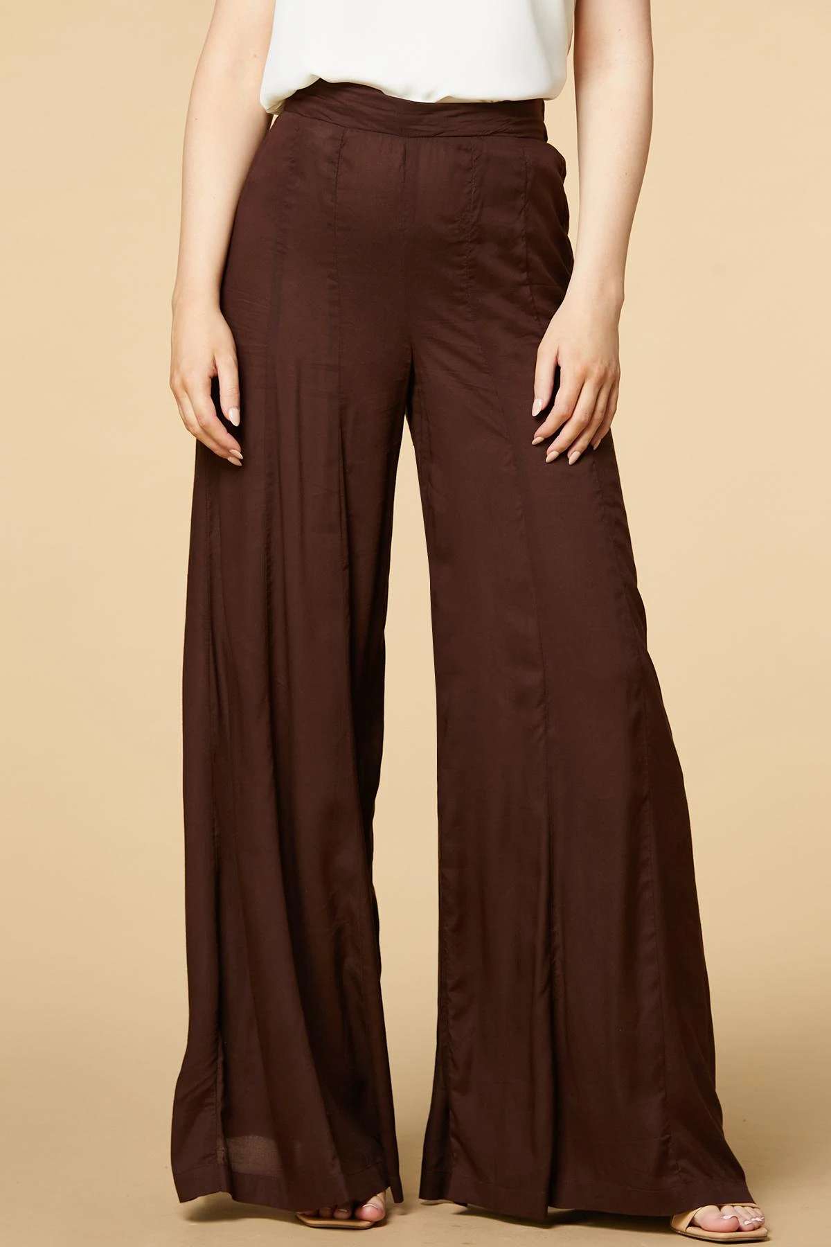 Easy going and so-chic, too is the name of the game with this wide leg style in a chocolate brown hue. An elastic waist and flowy fit make them a favorite for a cool and carefree vibe.
