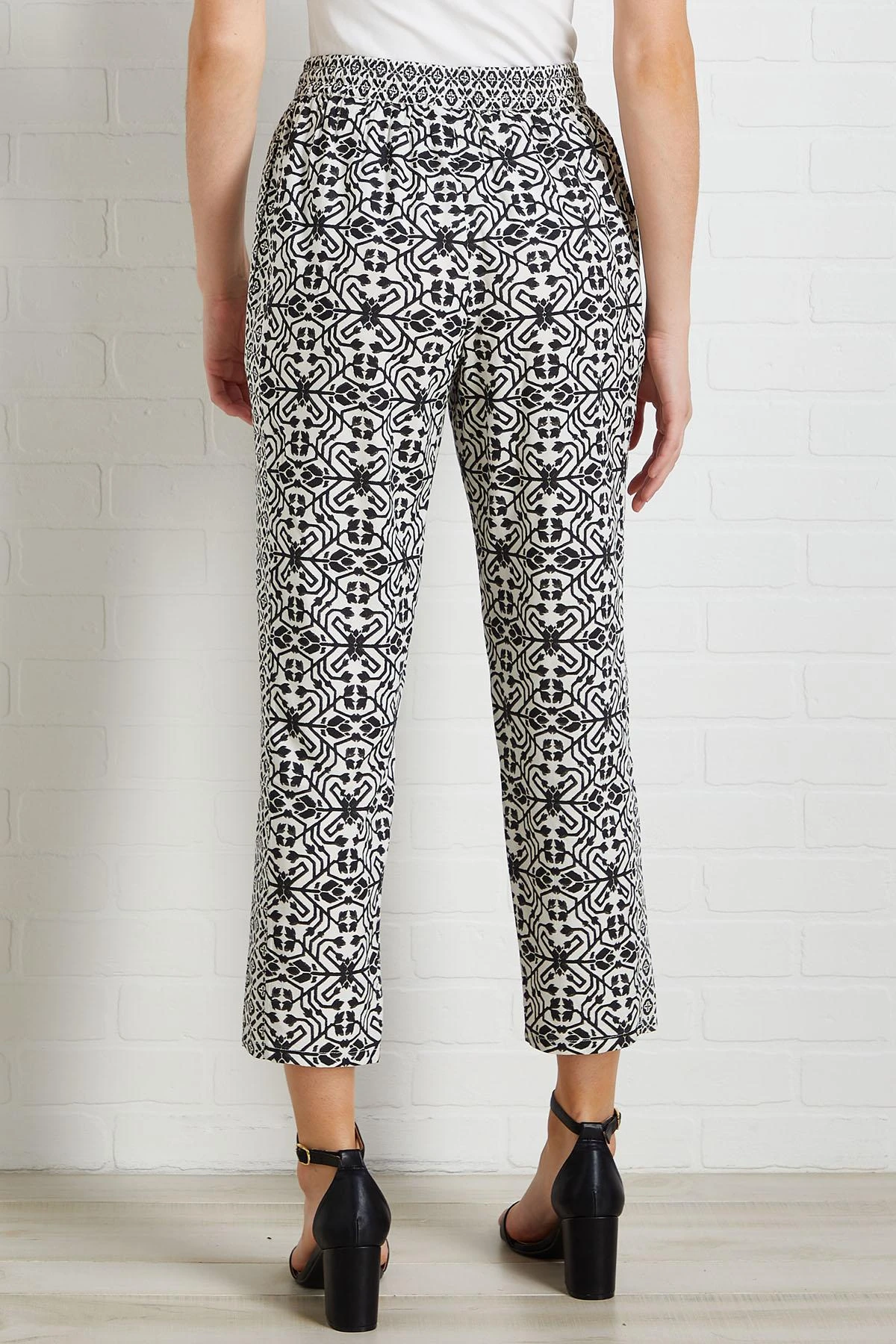 Catch a flight and escape to somewhere amazing with the worldy print, comfortable, drawstring waist and contrasting color palette of this easy-breezy style.