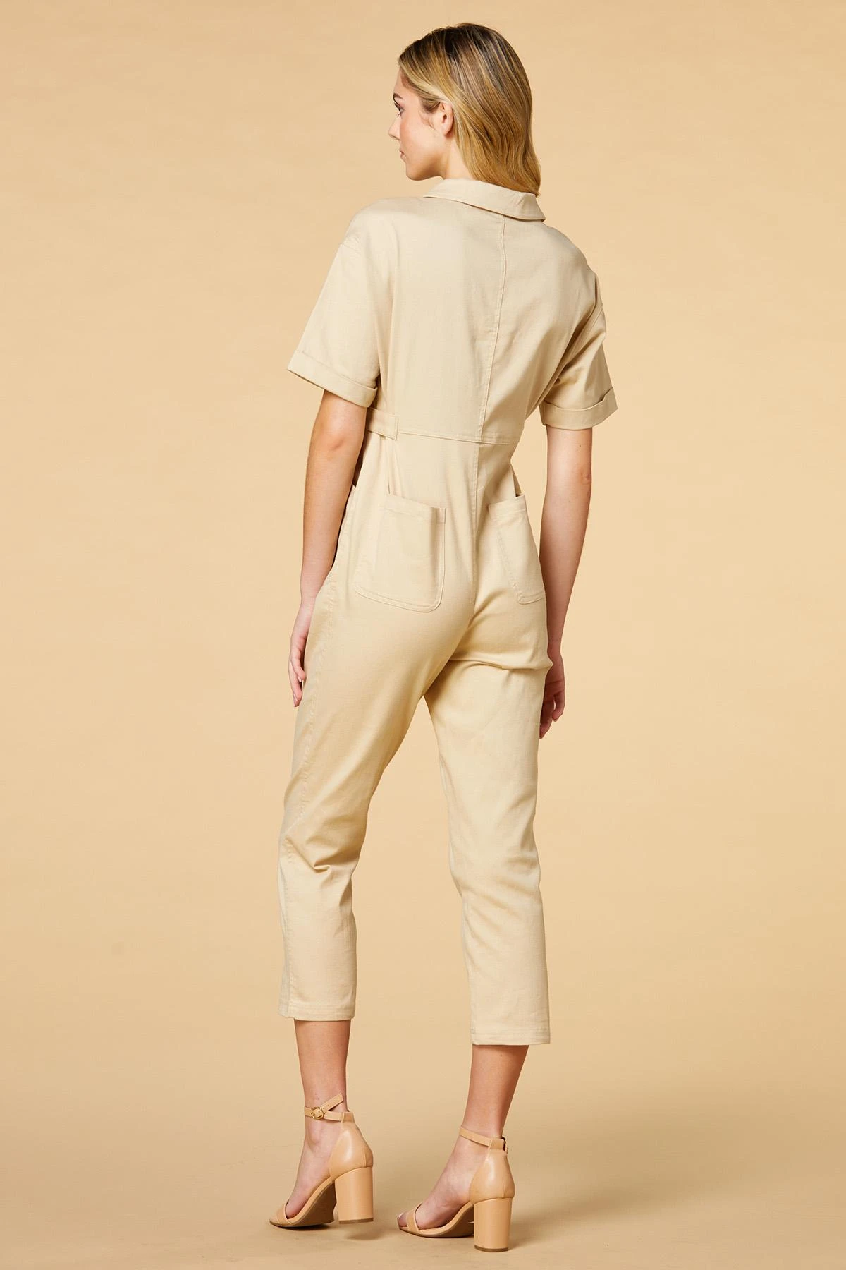 Adventure is out there with this utility jumpsuit. A cropped fit with front button details and pockets allow you to work and move as needed and look good while doing it.