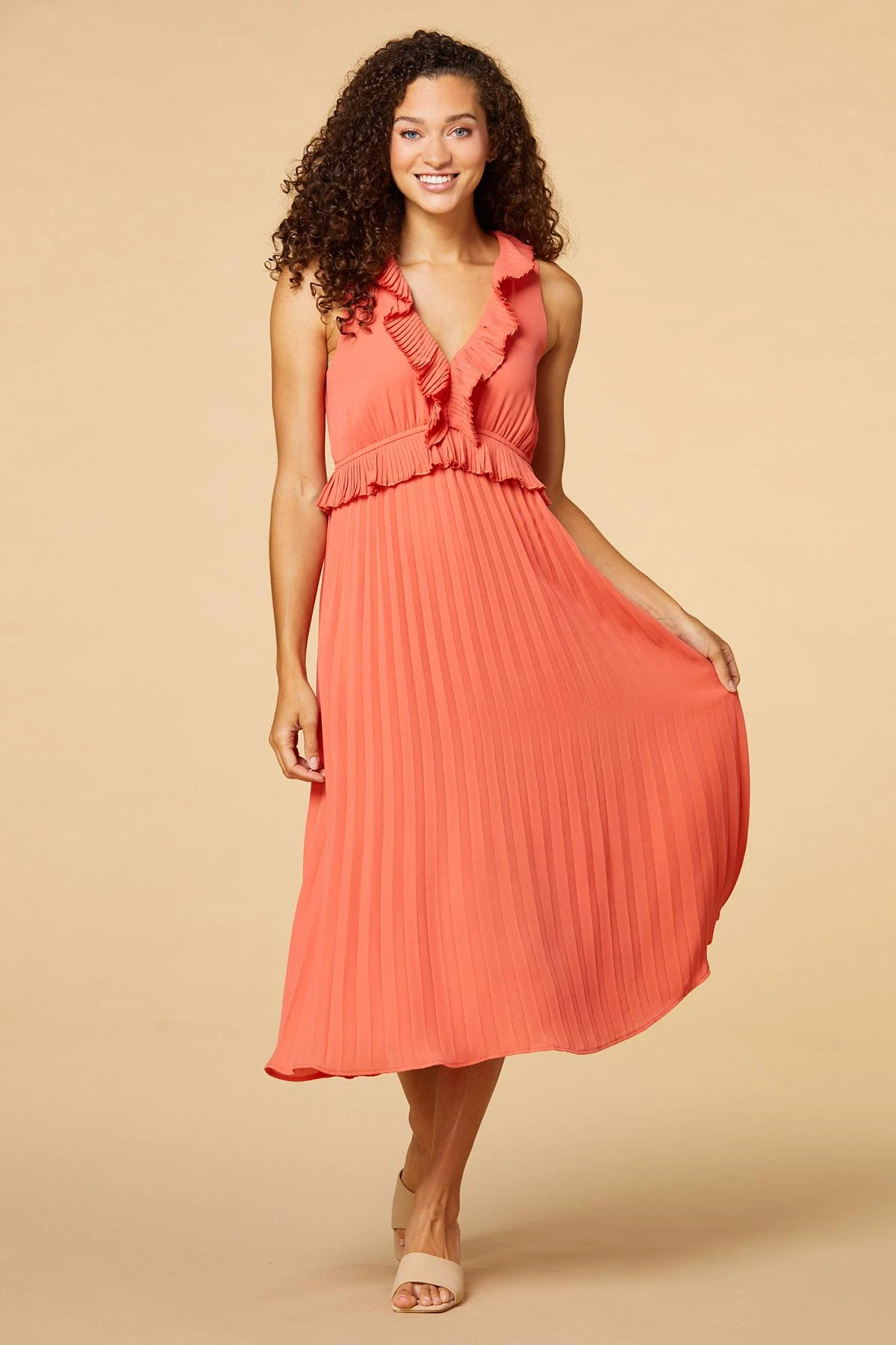 Come out on top every time with this dress. A pleated body with ruffled details creates a fun look with a flirty feel.