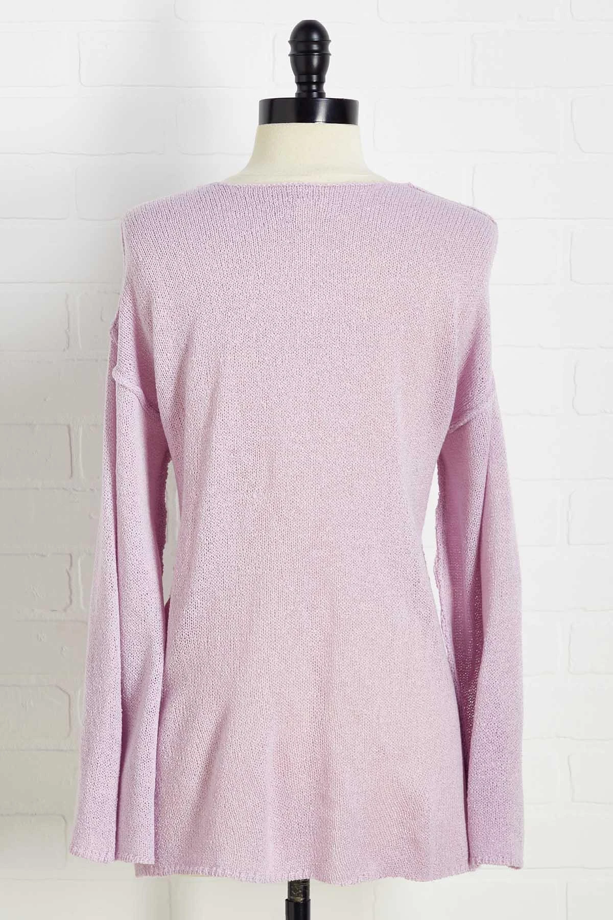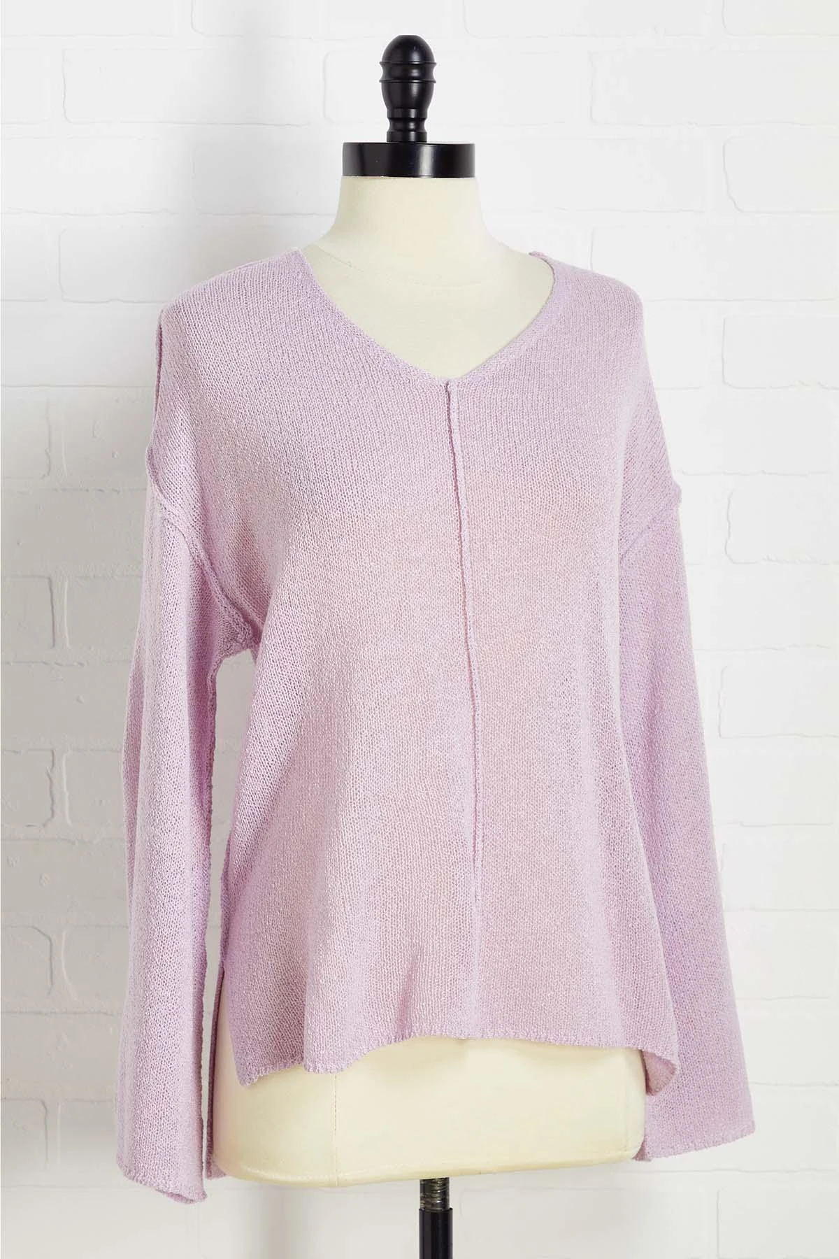 The prettiest-purple hue adorns this delicate, lightweight sweater for a look that’s showing up just in time for spring.