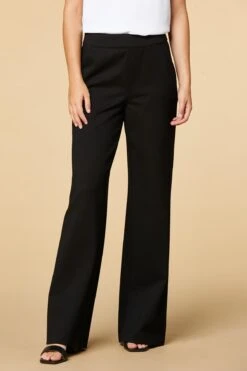 Stretch it out with these posh pants. A pull-on style with compression fabrication and a wide leg fit create a pair of pants that’s both comfortable and classy so you can wear them wherever you choose.