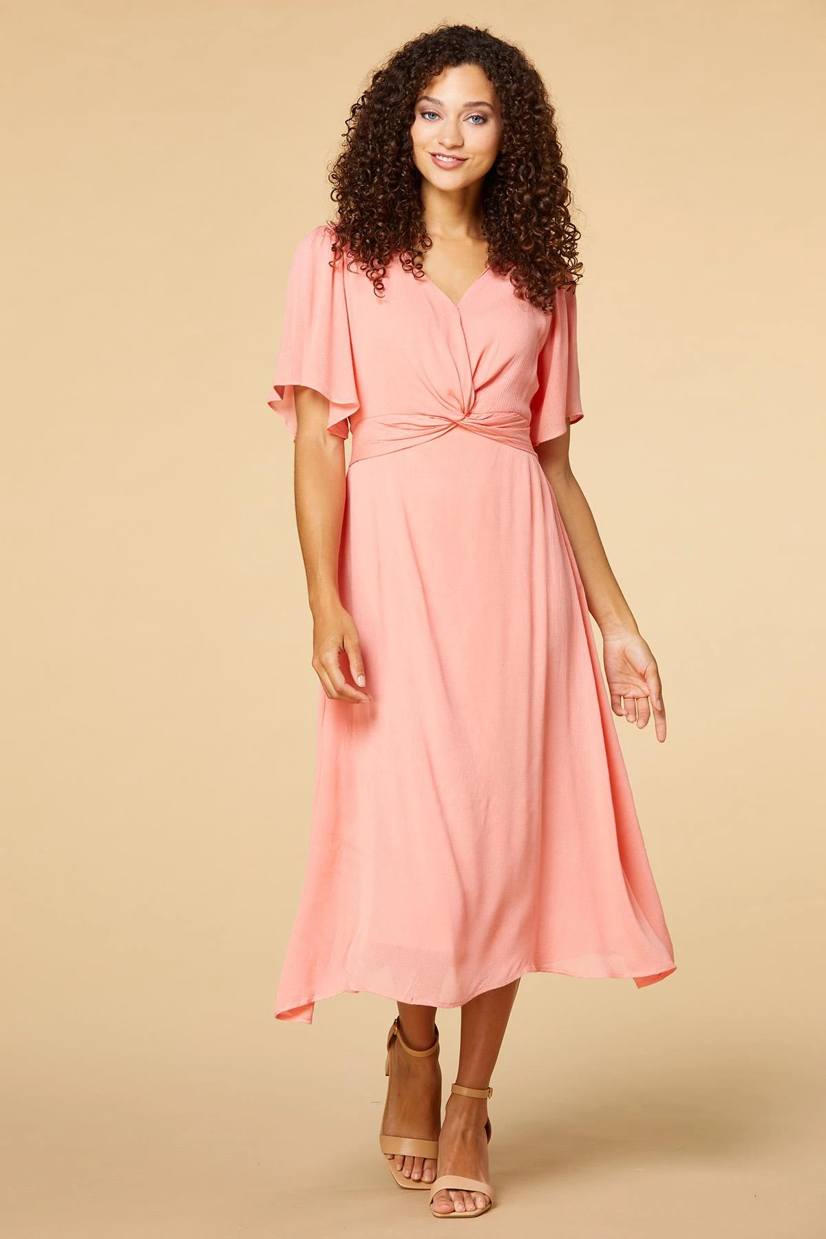 Be sure to capture a photo or two in this insta-worthy style with a crinkled-gauze texture, v-neckline, flutter sleeves, and twisted front detail. A fresh, ivory hue and breezy silhouette give this love-at-first-sight look its dreamy finish.