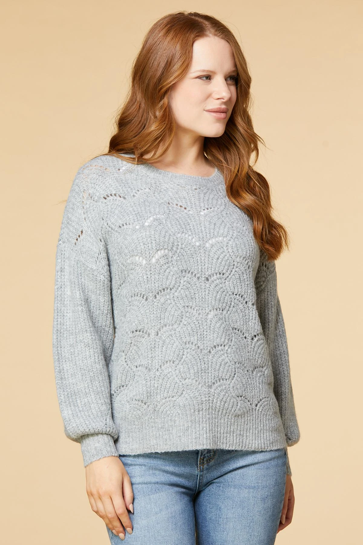 This sweater is the main idea. A solid-color staple with pointelle stitching and balloon sleeves is cozy and cute…giving you the best of both worlds.