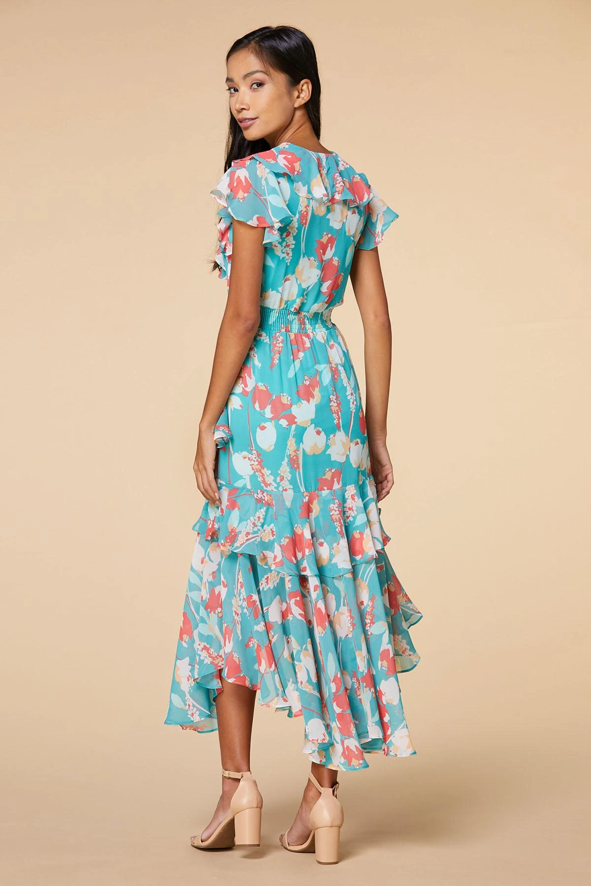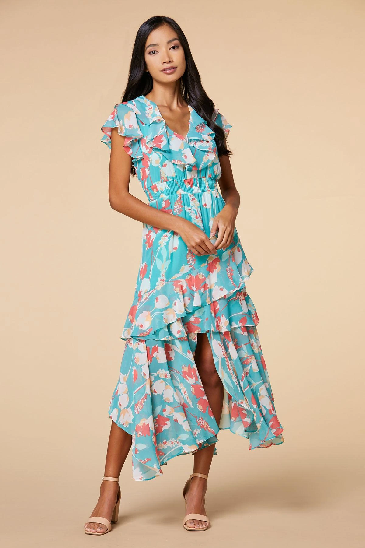 And, the best dressed goes to – YOU! This charming number has so many details to love – a ruffled, v-neckline, stretchy-smocked waist, floral print and cascading ruffles, topping off a beautiful shade of blue.