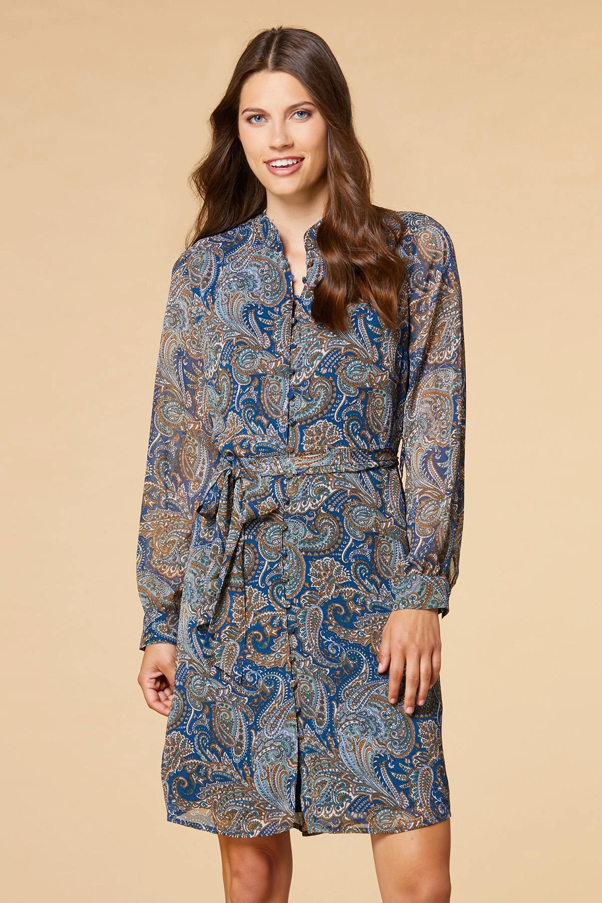Every day is payday with this beauty. A paisley print and a tie belt add feminine flair to this classic shirt dress style.