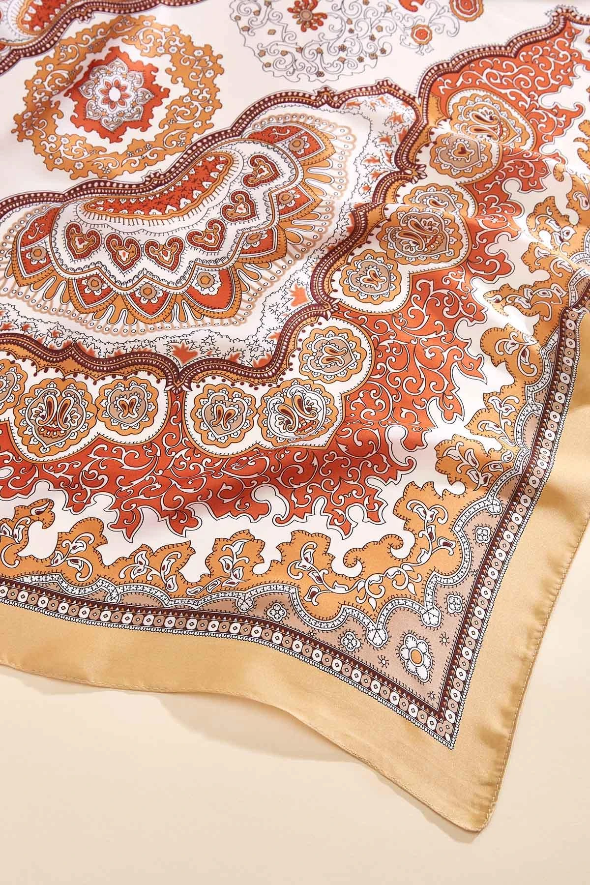 Looking for a pretty accessory to top off your outfit? We got you. Neutral colors star in this paisley-printed neckerchief.