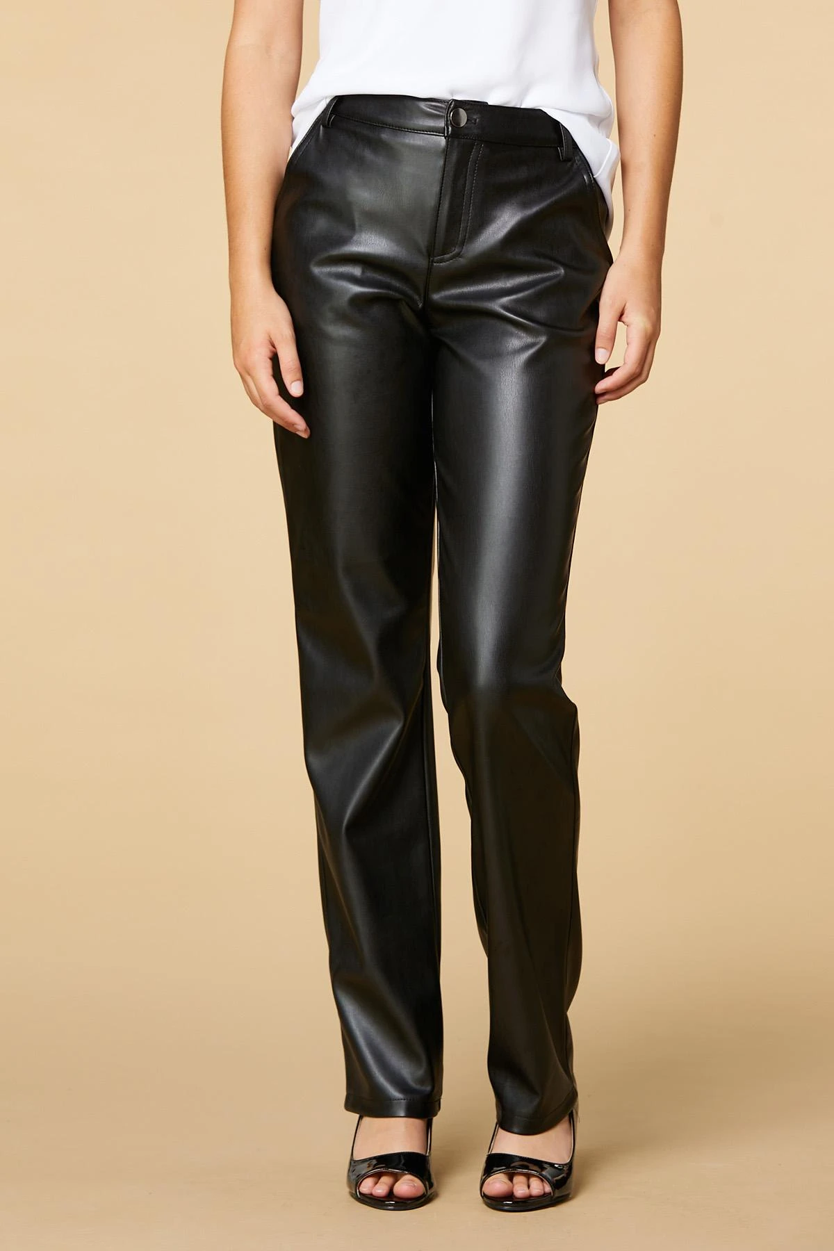 These straight-leg pants are close-fitting, but not too tight for comfort. Faux leather fabrication helps you stand out from the crowd with a uniquely smooth and shiny look.