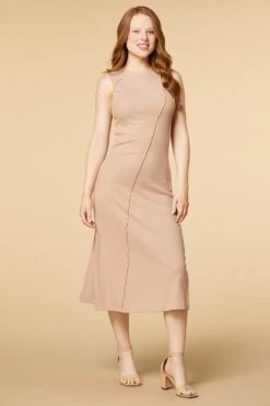Dress up for the sun with this one. A scoop neckline follows a flattering-stretch fit, midi length and exposed seams, while a ribbed-knit gives you that texture you love.