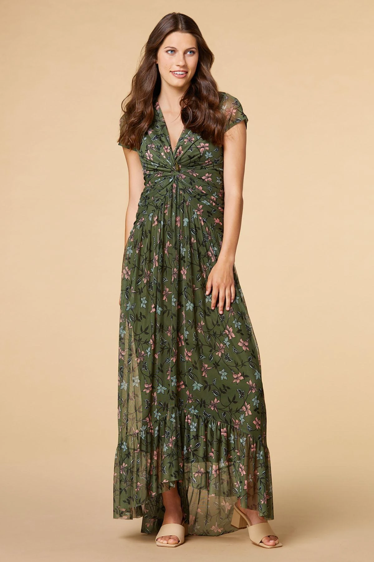Some secrets are too sweet to keep. That’s why we’re sharing this marvelous maxi complete with a floral print, light mesh fabrication and a twist front.