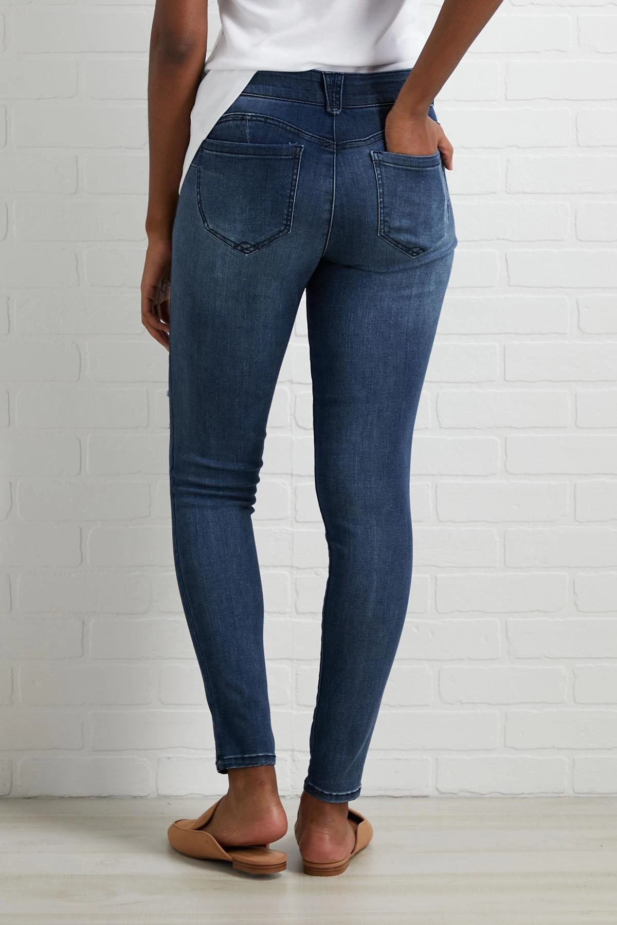 Subtly distressed but obviously cute, these medium wash skinnies are a gotta-have for adding to your closet essentials.