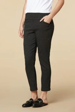 Pull these pants on and get your workday started in style. Stretchy fabrication, a cropped fit and a split dot print create a casually cute style that works in the office or at home.