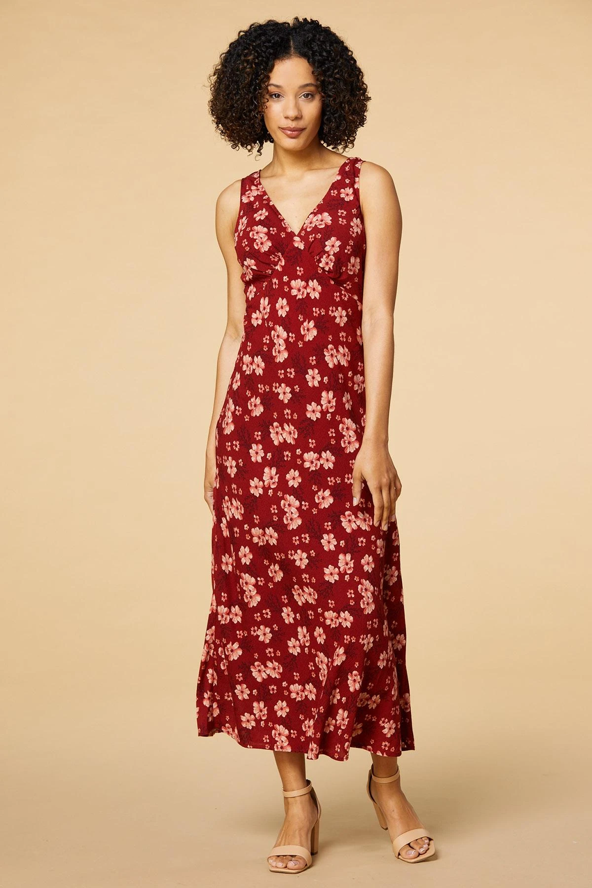 Hollywood glam meets casual cute in this maxi dress. A v-neckline and a floral print grace this stunning number for a look that’s worthy of the golden age.