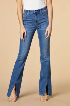 Catch their eyes with these jeans. Medium wash coloring and flared hems with slits create a uniquely trendy style that’s perfect for any occasion.