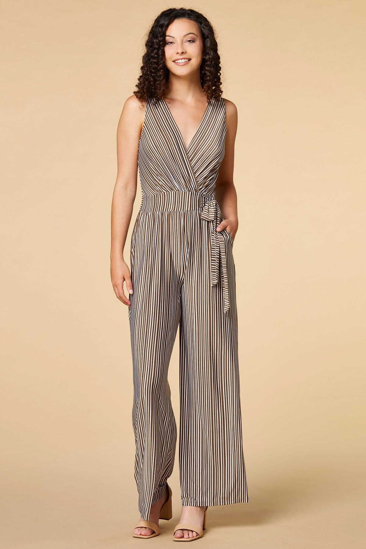 This printed jumpsuit is sure to turn heads. Sleeveless, breathable and finished with a ribbon tied side.