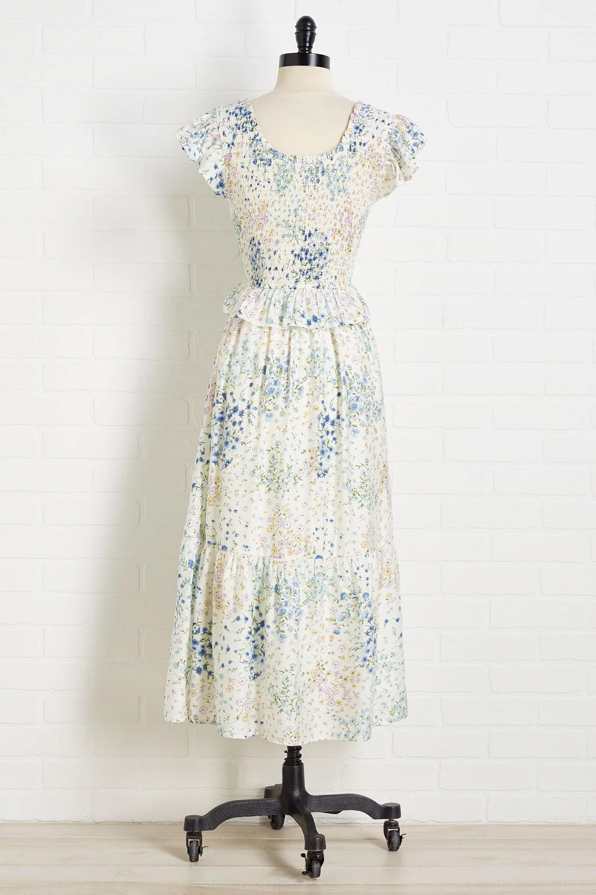 Say hello to ray (of sunshine that is) with this charming dress. A ruffled-smocked bodice meets flutter sleeves, a ruffled waist and flowy fit, while a dreamy garden print tops it off beautifully.