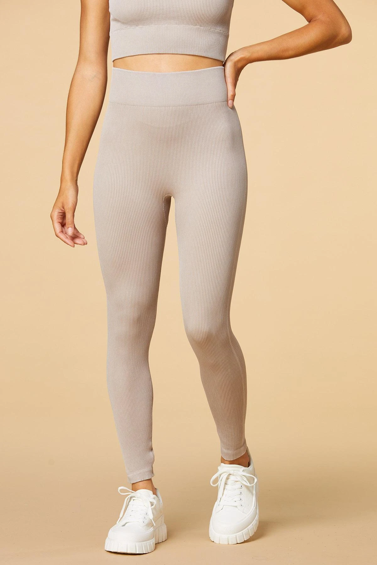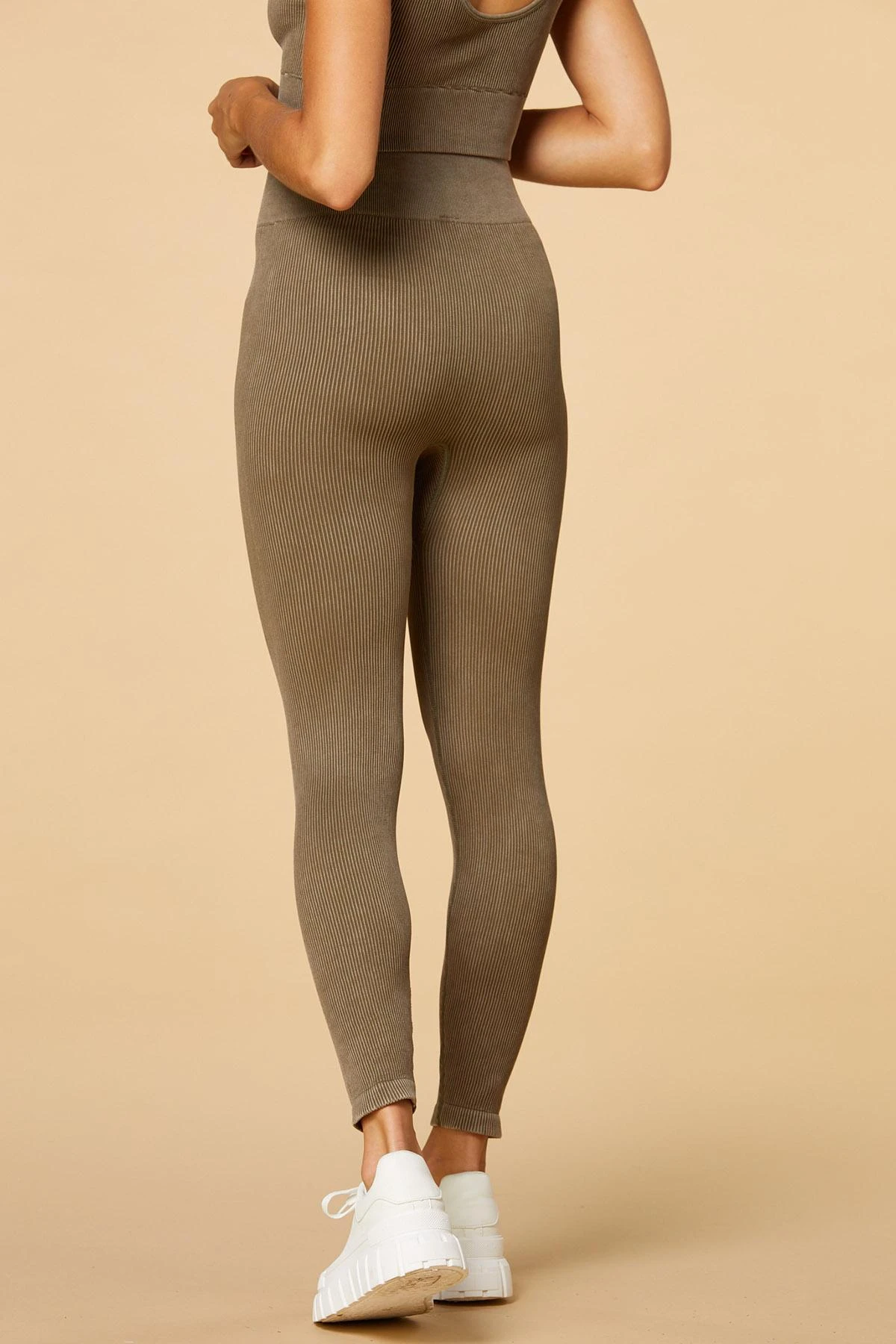 Get your sweat on- these ribbed leggings feature a seamless fit, mineral wash effect and look workout-ready when paired with the matching sports bra.