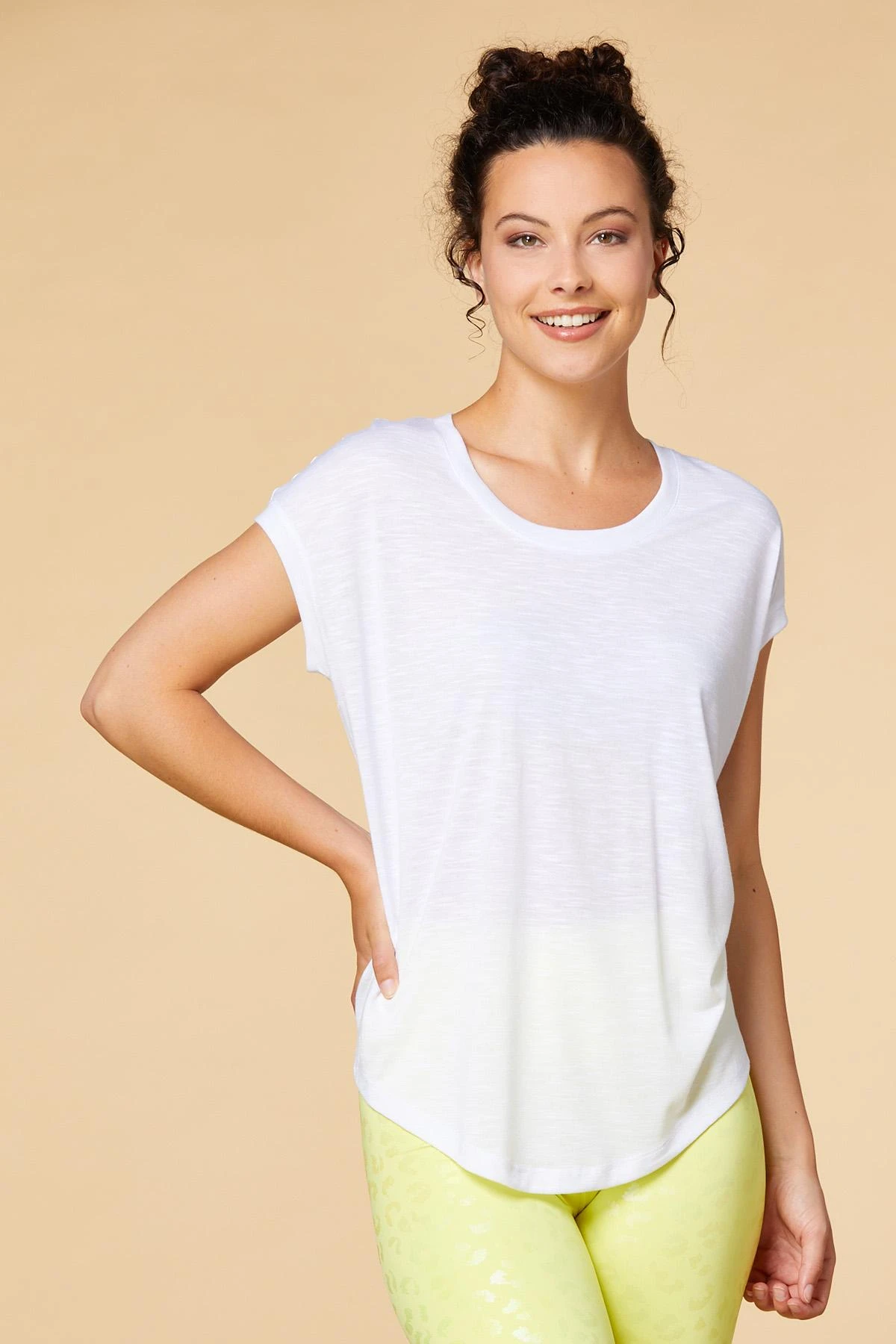 Get some much needed R&R with this simple top. Super soft and breathable fabrication keeps you cool and collected while a high-low hem adds a cute detail.