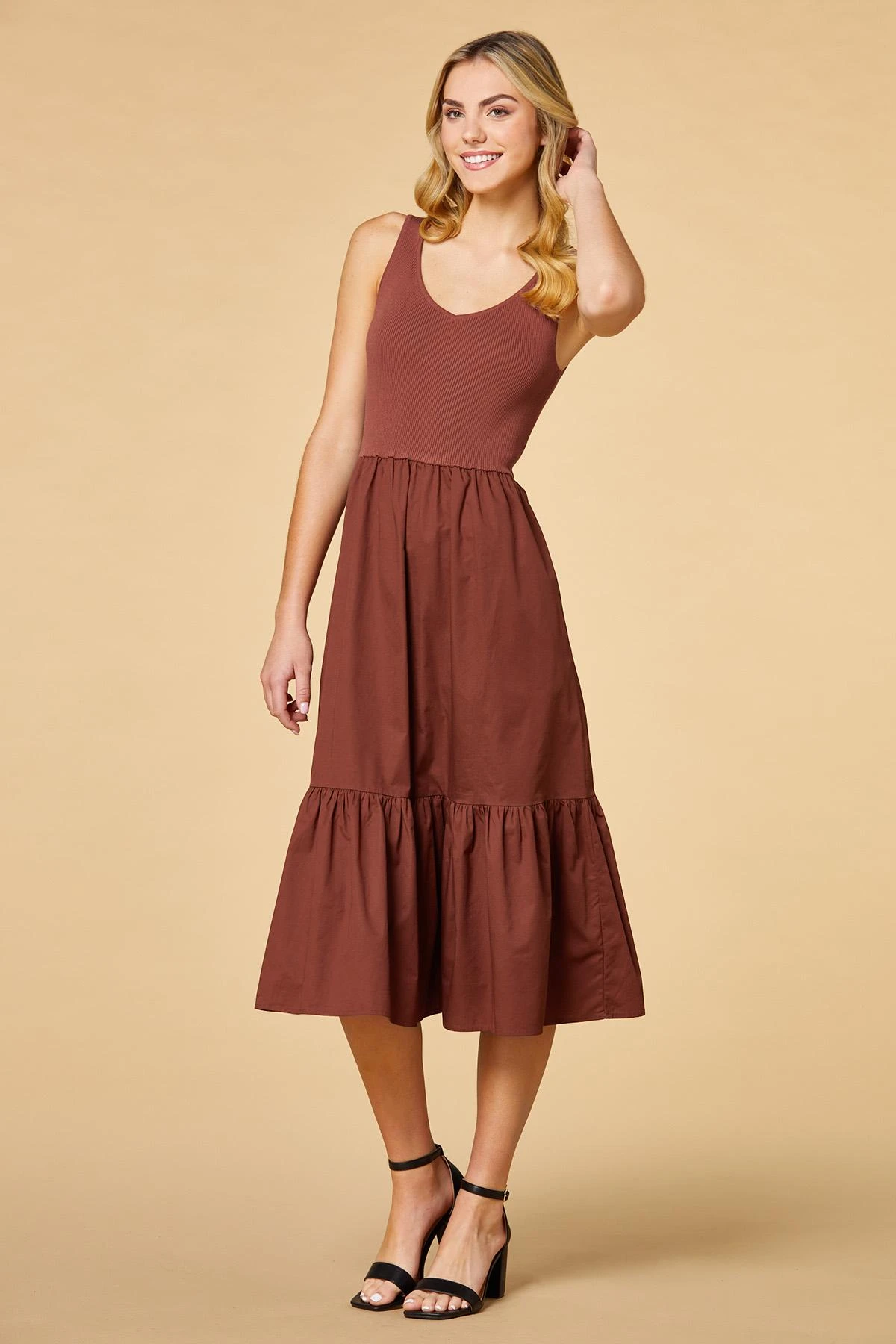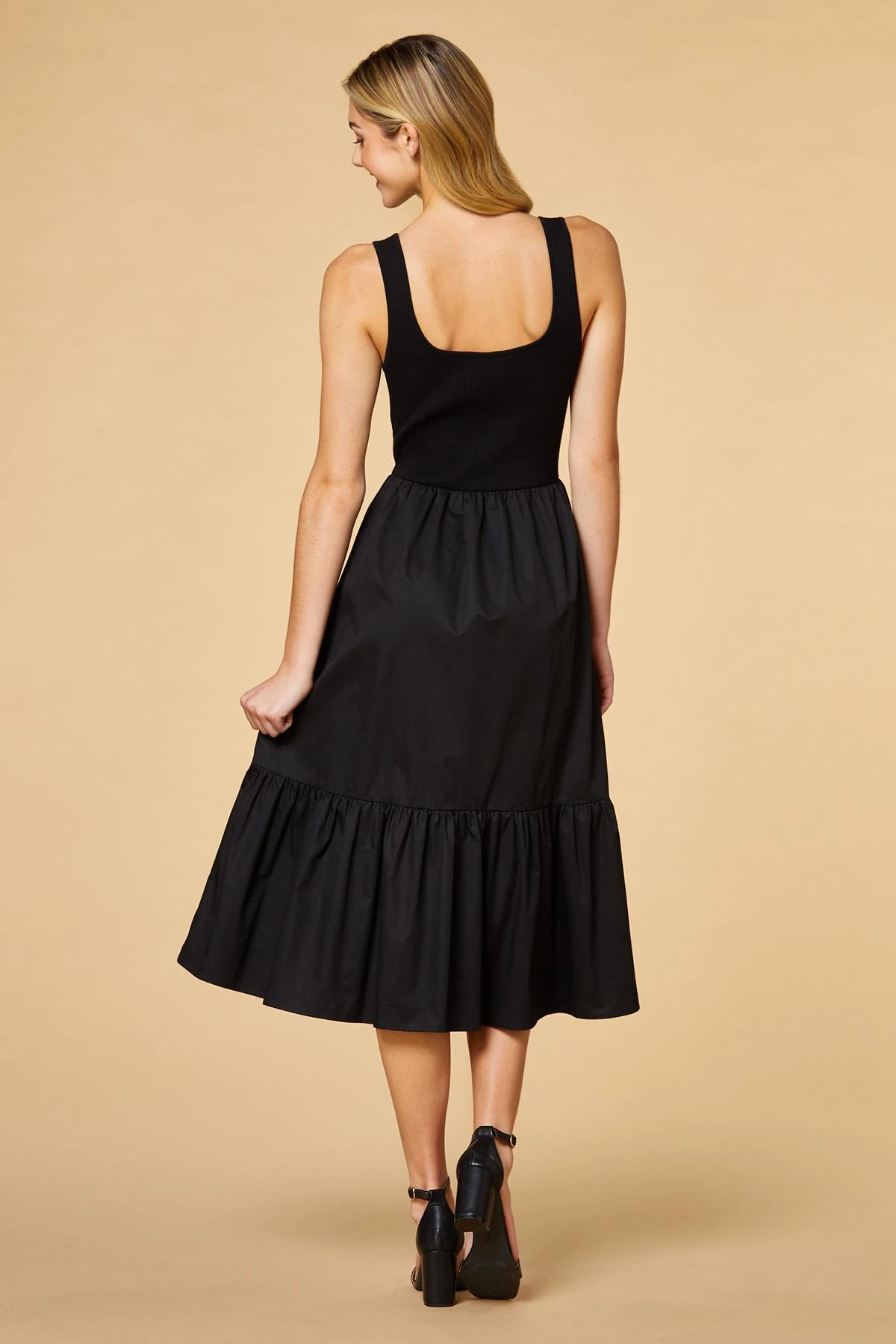 Two materials, double the fun. This midi dress features a tiered body and classic tank top, making it a perfectly simple option for when you can’t pick just one.
