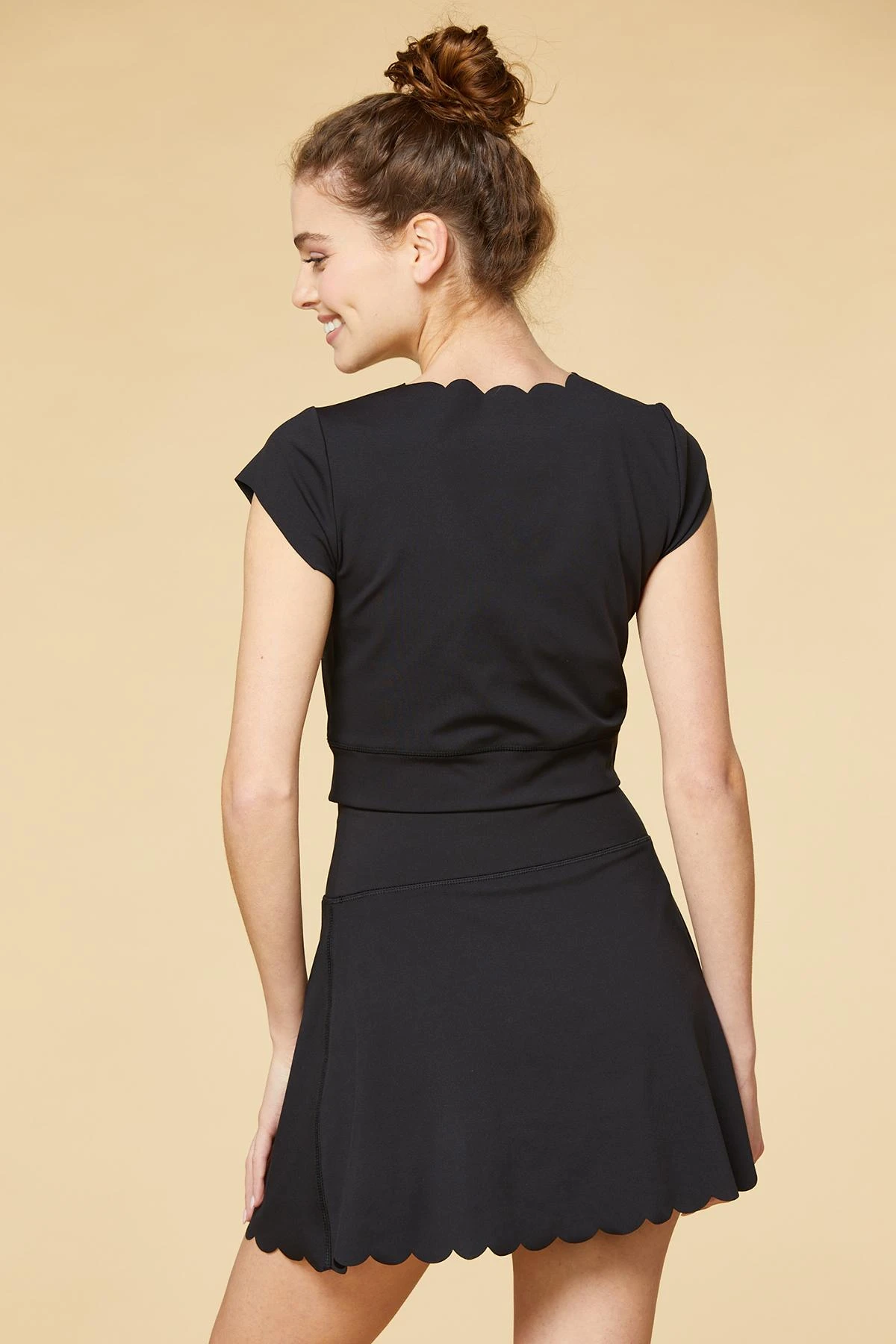Get moving in this exercise top! The fabrication is stretchy and breathable for an unrestricted sweat sesh. Plus, a scalloped neckline and cropped hem add a splash of style. Wear with our work in progress skort for a completed set!