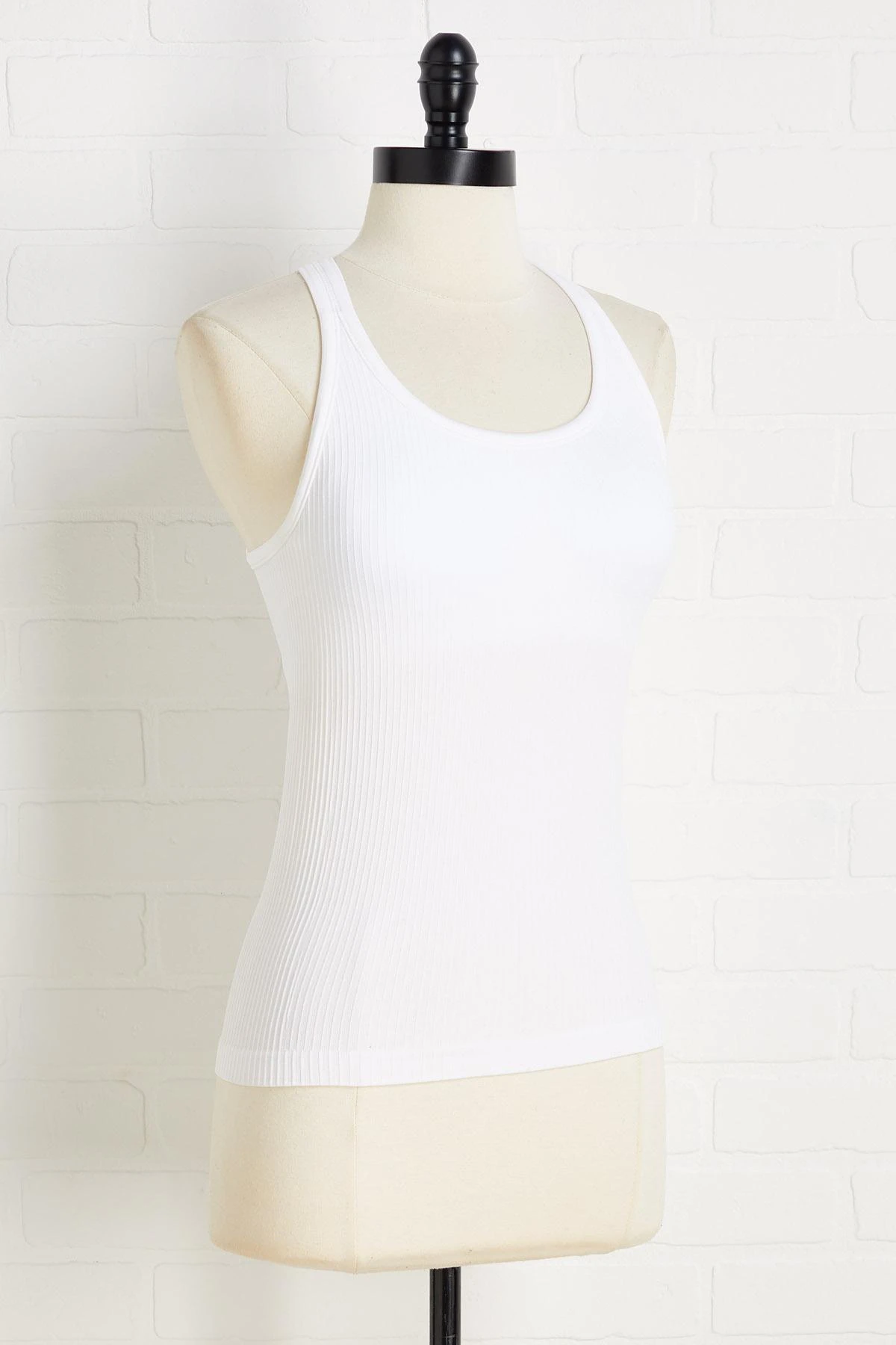 Run don’t walk to this stretchy-ribbed style with a scoop neckline, racer back design, and supportive cups for a comfortable fit.